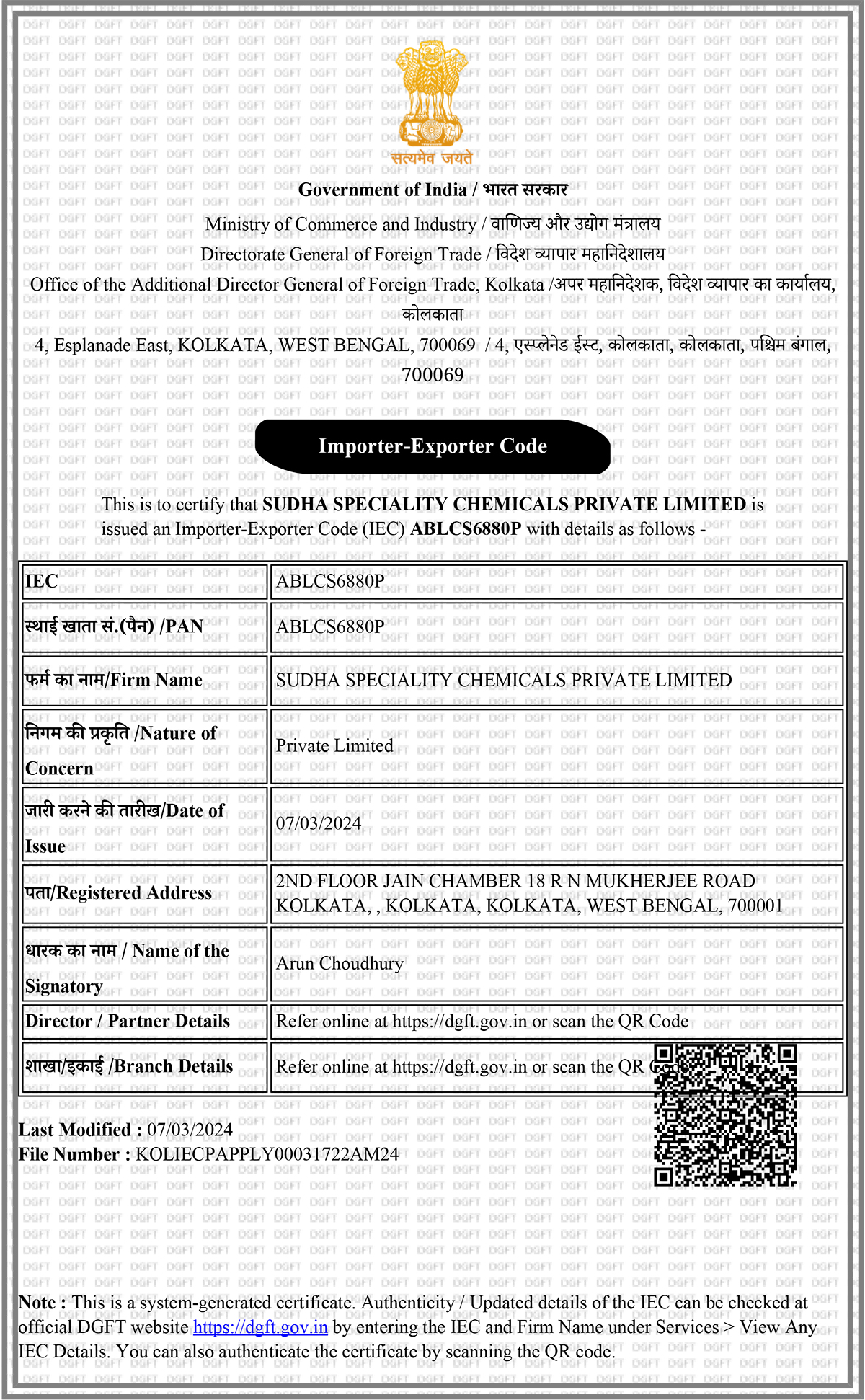 Address: 18, R. N. Mukherjee Road, 2nd Floor, Suite No.3, Kolkata-700 001